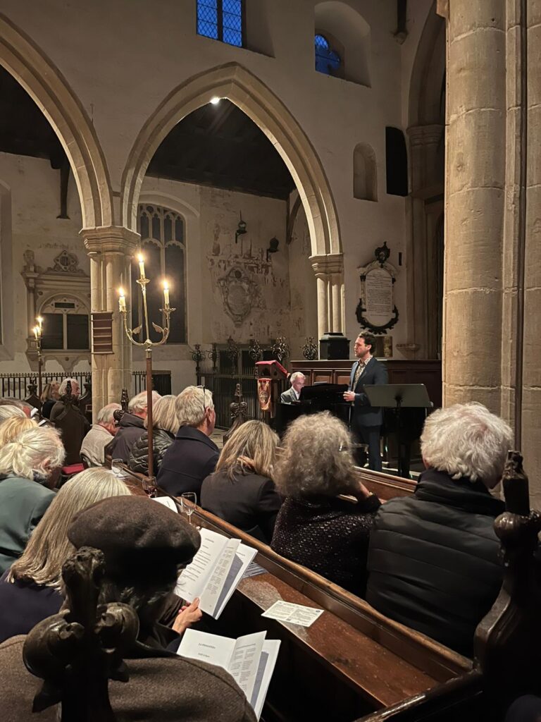 On Friday evening, 17th April in a candlelit, and atmospheric Heydon, St Peter & Paul, the assembled were treated to a wonderful evening of opera from Norfolk’s very own Jacob Harrison, accompanied on the piano by Mark Jones.