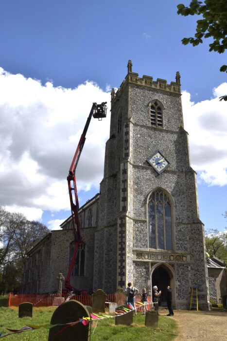 Our main image this month is of works taking place on the tower and porch roof at Great Cressingham, St Michael. This, one of seven churches that were venues for our Heritage Skills & Maintenance Day on Saturday 18th April. We were delighted to welcome so many people who were able to see first-hand the many diverse range of maintenance skills involved to keep our churches safe and watertight. Repairs took place at each church with the contractors on site displaying their skills and answering questions on the tasks taking place on the day.